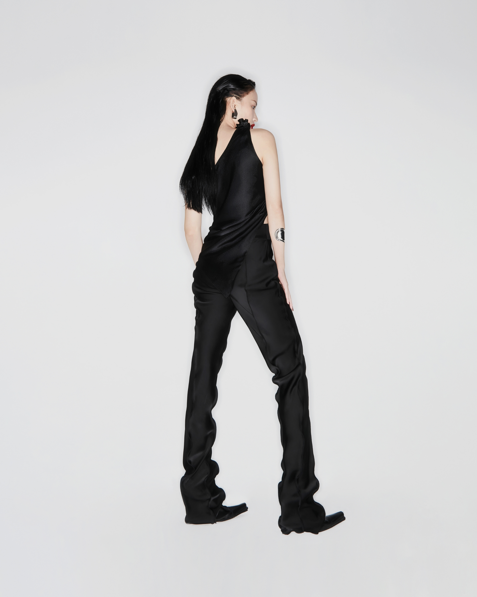 Black One Shoulder Silk Top