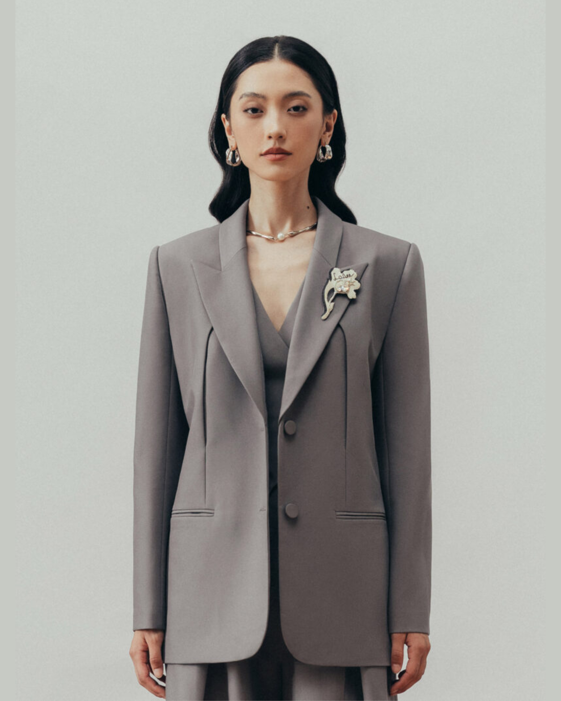 Modern, wrinkle-free blazer with a relaxed fit and delicate charm.