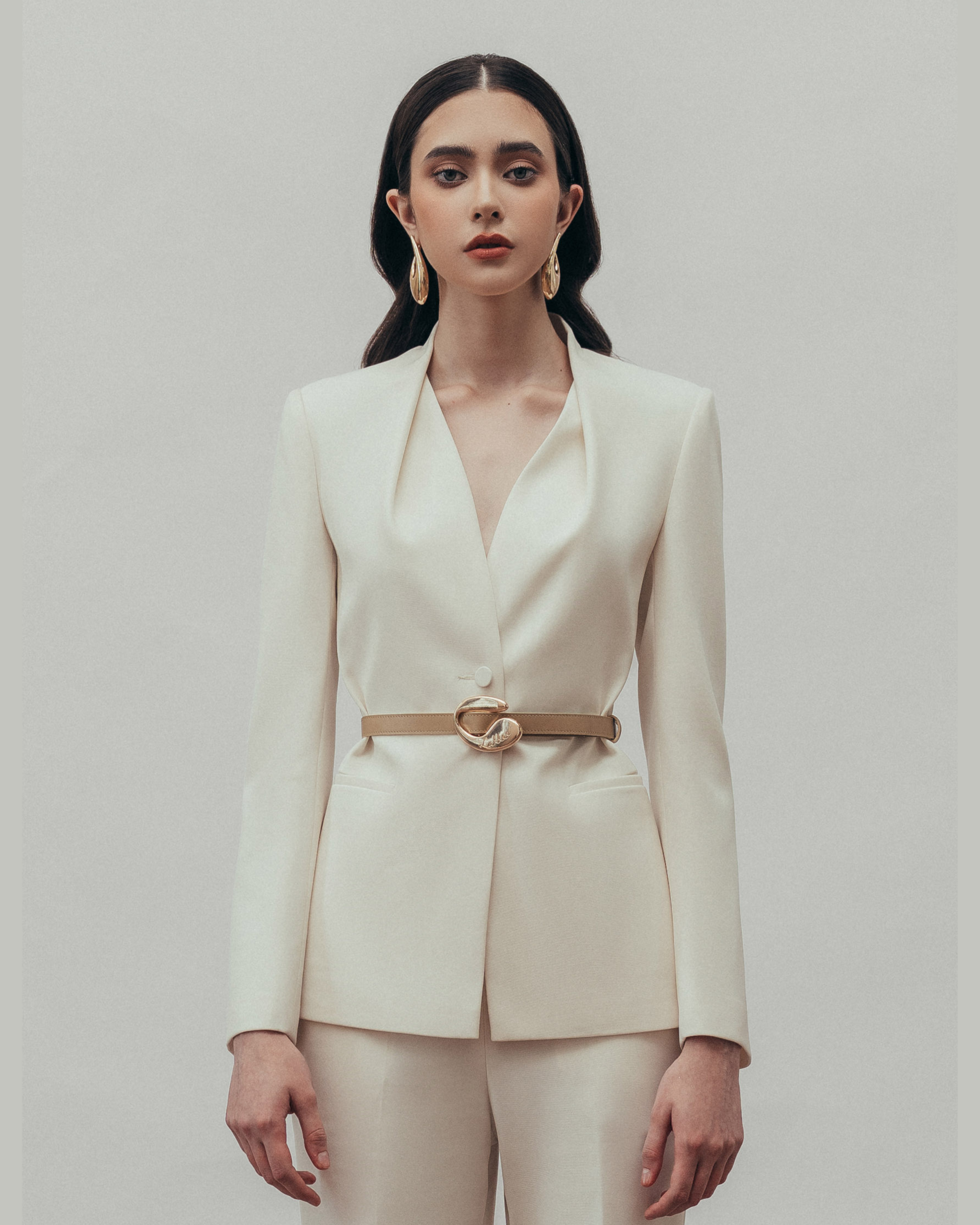 Sophisticated, relaxed-fit blazer with a leather belt, perfect for creating a modern look.